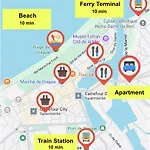 The apartment lies just off Church of Notre-Dame de Bonsecours and within a 2-km distance of Chateau de Dieppe. The nearest bus stop Vauquelin is 450 metres away, while Eglise du Sacre-Coeur de Janval is approximately a 25-minute walk away.
